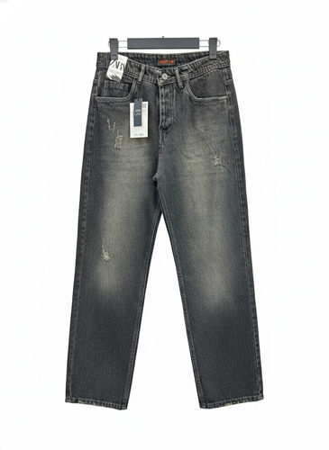 شلوارجین ذغالی مردانه مام فیت جنس پارچه پر درجه یک